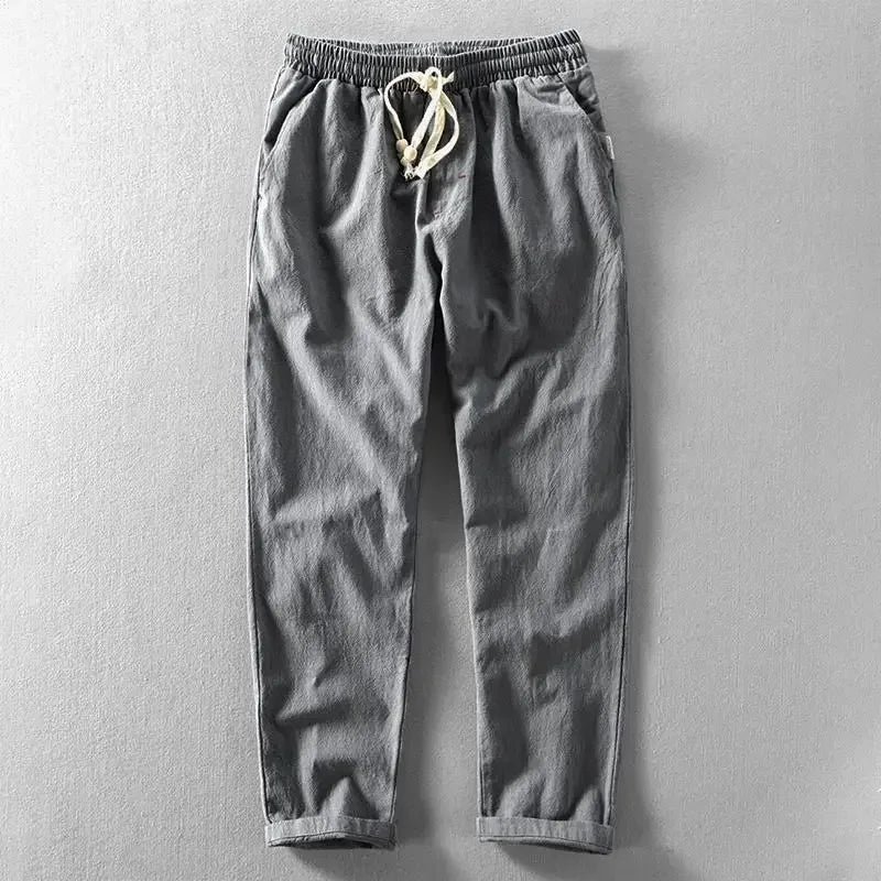 Inspired by minimalist Japanese streetwear, these cotton-blend joggers blend quiet style with everyday comfort. The tapered fit, rope-tie waist, and soft breathable fabric make them an easy go-to for effortless balance.